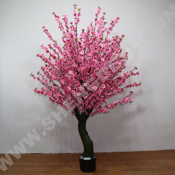 加密桃花盆栽采用璃鋼樹脂樹桿結構,采用高性能環氧樹脂和玻璃纖維纏繞成型,樹桿內采用國標鋼結構,樹葉采用ABS塑料或PU等高性能防阻燃環保材料。耐腐蝕性能良好,耐老化耐高溫防阻燃,更加環保,防紫外線。仿真盆栽常用于庭院、路邊及花壇之中,適于四季觀賞。